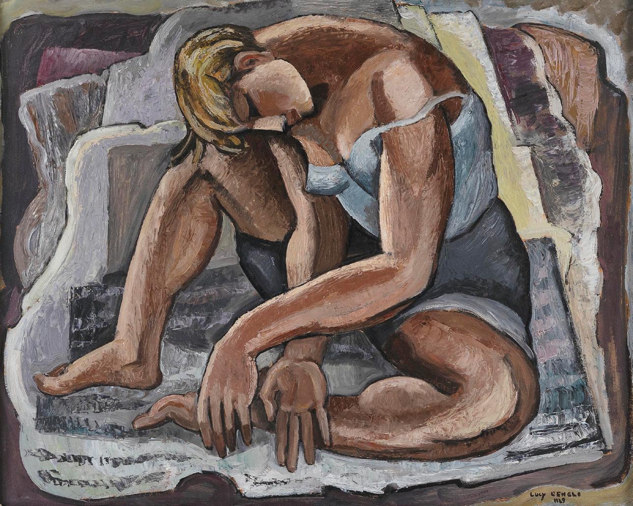 “Figure”. From the Martha Graham Dancer series. Signed and dated lower right “Lucy L’Engle 1928”. Titled, signed and marked “151 E. 53rd Street” verso. Oil on board, 24” x 30”. Framed 33” x 38”.