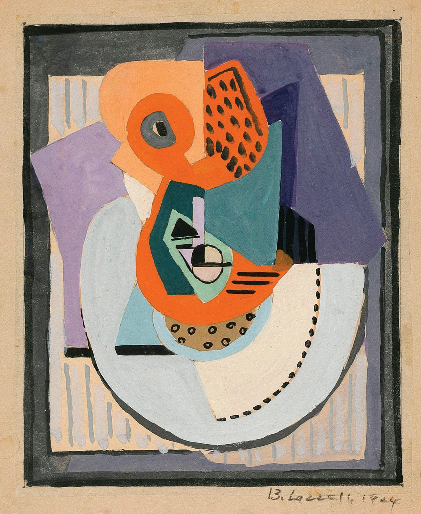 Still life. Signed and dated in margin lower right “B. Lazzell 1924”. Watercolor and gouache on paper, 9” x 6.5”. Framed 16” x 14”. 10,000/12,000