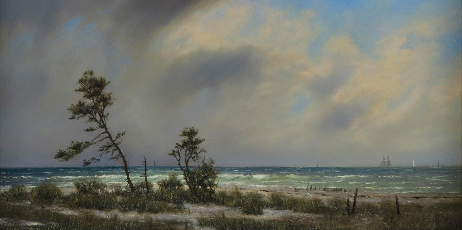 Massachusetts, 1952“Windswept”. Signed lower left “William R. Davis”. Signed and titled verso. Oil on canvas, 15” x 30”. Framed 23” x 38”. 10,000/15,000