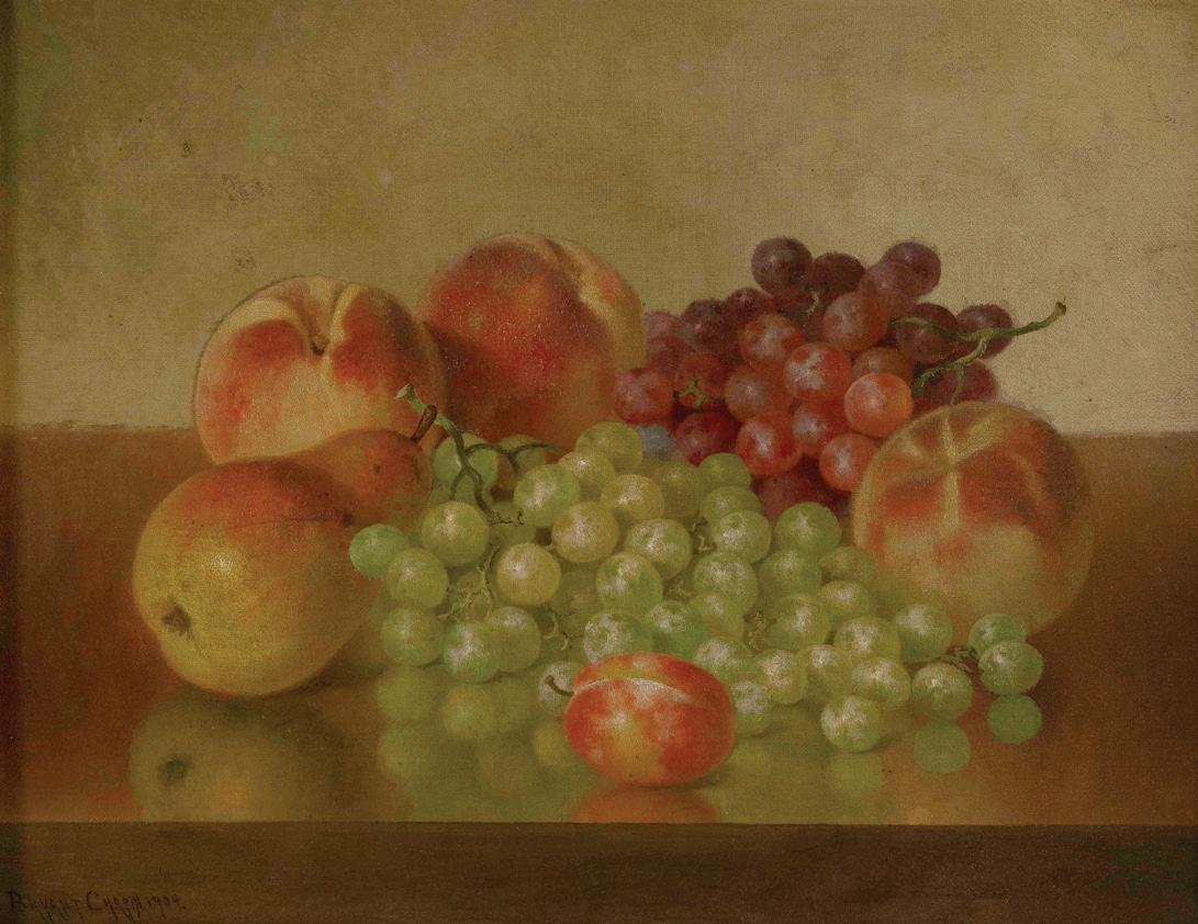 Still life of fruit and bread. Signed lower left “Knaths”. Remnants of Los Angeles Exposition label verso. Oil on canvas, 18” x 18”. Framed 23” x 23”. 5,000/8,000