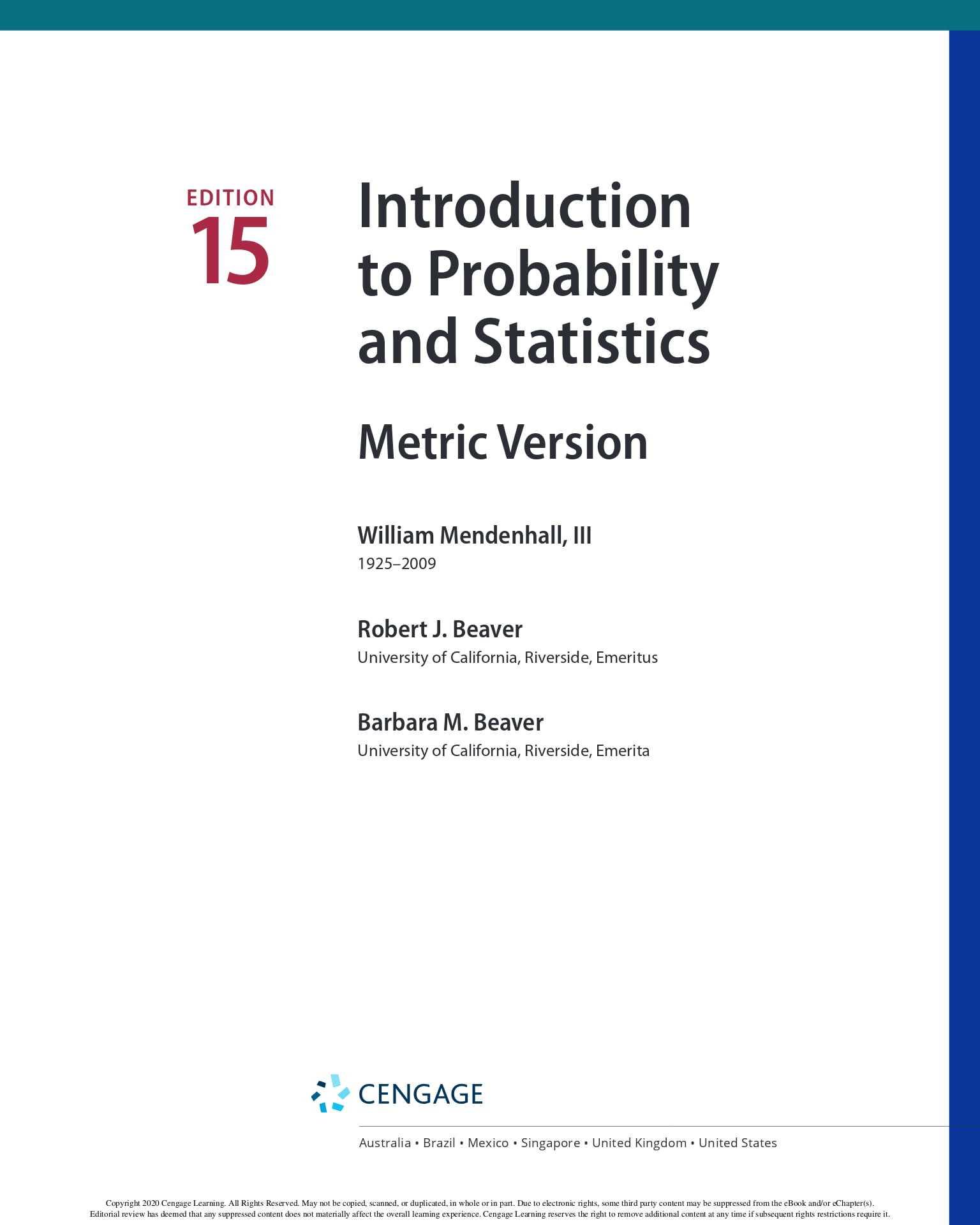 Introduction to Probability and Statistics - Metric Version, 15e 15th Edition William Mendenhall - eBook PDF