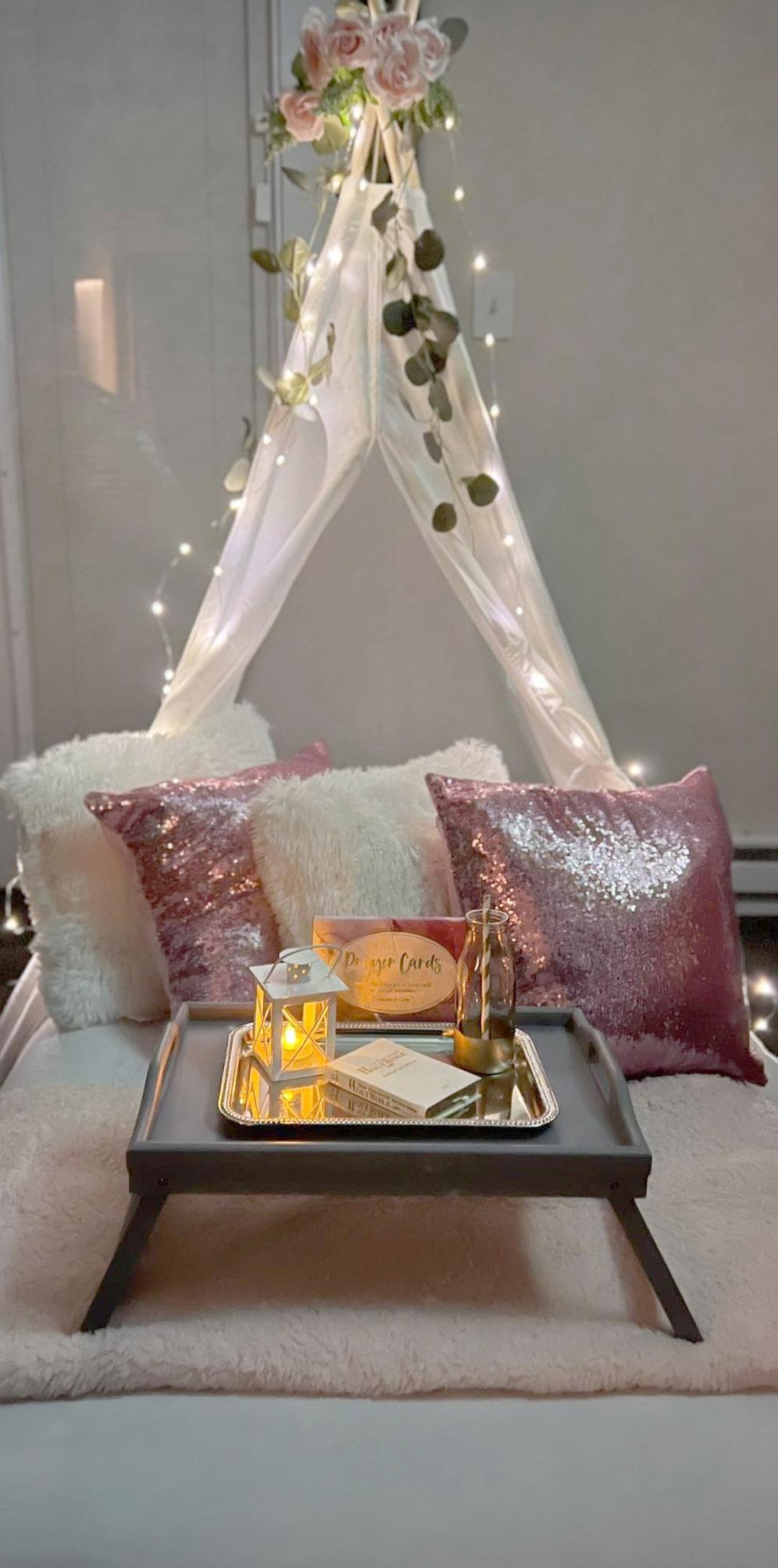 A Star Light slumber party consists of teepees, twin-size air mattresses, sheet sets, light blankets, twin-size pillows with cases and decorative pillows to match — and this is just the basic package. Stover also has more extensive options, including goodies like a breakfast tray, string lights, sleep mask party favors and a pampering gift set. She has packages for every budget.