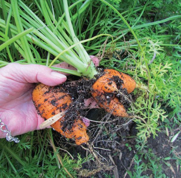 Carrots are hard for many Hoosiers to grow because Indiana’s soil is typically clay. Carrots’ long, tapered roots can be stunted or misshapen when they hit heavy clay or hardpan soil. This veggie can be grown in spring through summer and into fall. Short stuff carrots are perfect for containers or growing in lessthan-perfect soil. They are short, about 4 inches long, and fat — a great size for roasting. Sow seeds directly outdoors in pots or in the ground. Keep the soil moist but not wet.