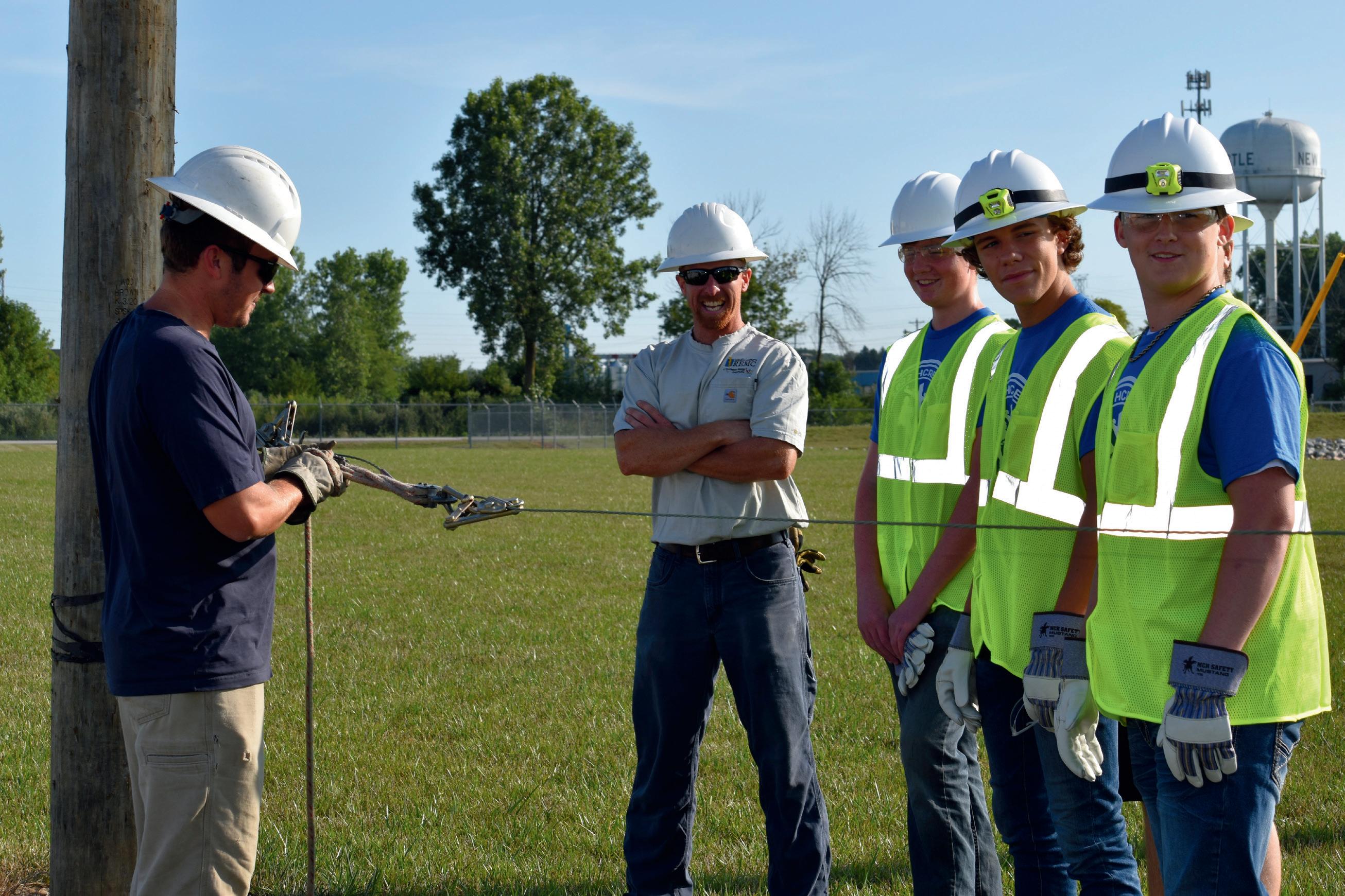 (personal protective equipment), such as safety glasses, vests, hard hats, and gloves. Throughout the week, you may have seen students with staff replacing old poles at the New Castle Saddle Club, cutting trees at Westwood Park, or attending a pole top rescue demonstration on HCREMC grounds.