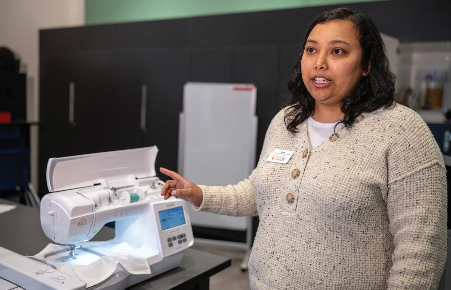 Makerstudio Specialist Riya Shrestha Koirala demonstrates an embroidery machine.