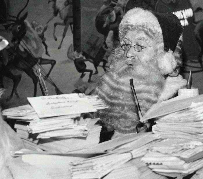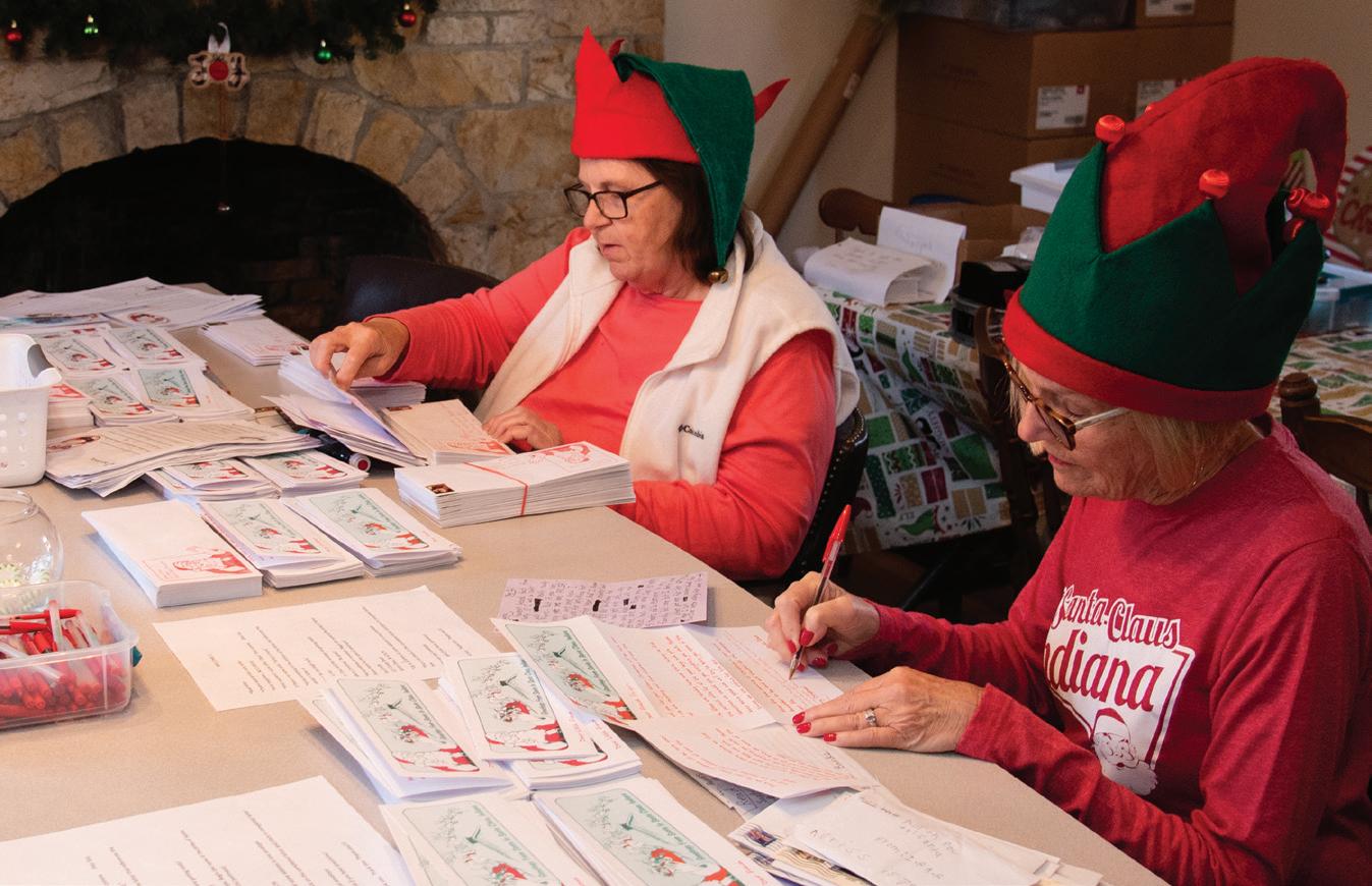 Pat Koch is all smiles as she prepares the reply to a child who’d written Santa. Koch, who’s been ghostwriting for Santa since 1943, is the chief elf of the Santa’s Elves, a nonprofit workshop of volunteers who answer the avalanche of mail Santa receives at Santa Claus, Indiana.