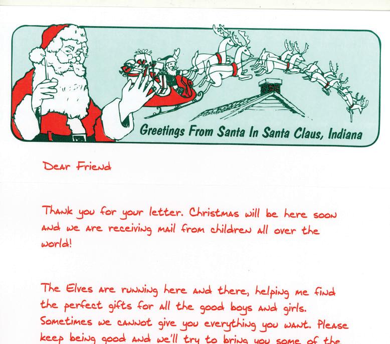 Santa Claus P.O. Box 1 Santa Claus, IN 47579
