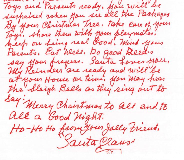 “When we do letters, it helps keep alive that childlike belief we should all have,“ Koch said. “I believe in Santa Claus because Santa is a spirit. Santa Claus will live forever — if we keep him alive.”