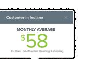 With WaterFurnace, the average Hoosier pays $58/mo. to provide heating, cooling and hot water for their home.
