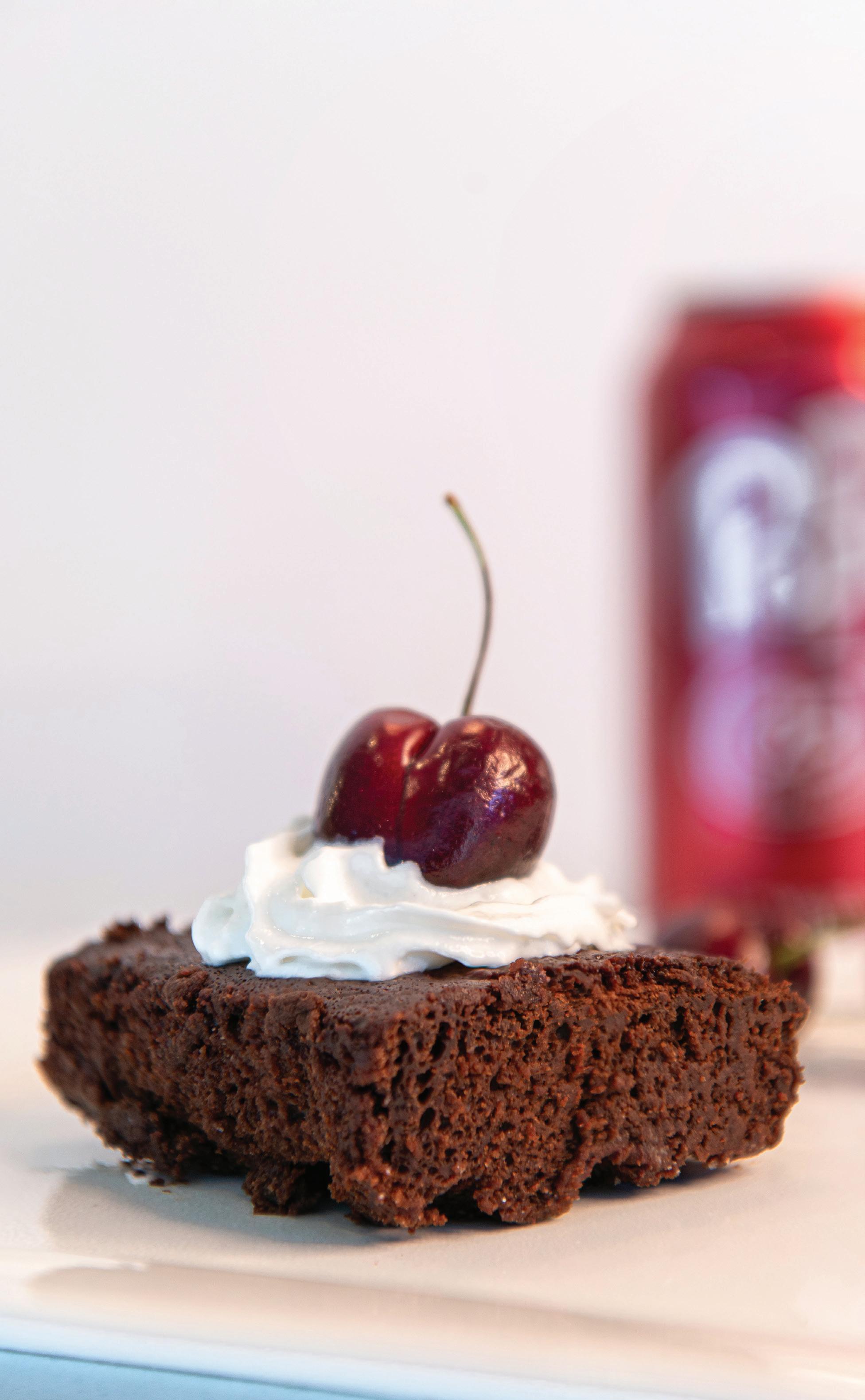 Preheat the oven to 350 F. Grease an 8x8 pan. In a medium bowl, stir together all the dry ingredients except the chocolate chips. Stir in the Dr. Pepper and vanilla until blended, then add the chocolate chips. Pour into the prepared pan and bake for 30 to 40 minutes. Serve with fresh cherries or whipped cream if desired.