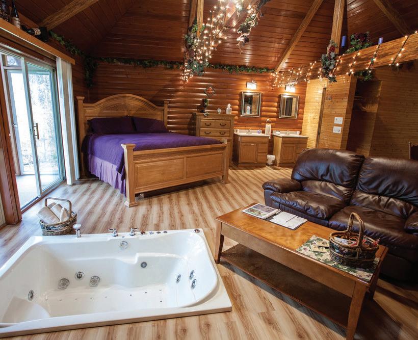 appointed with modern conveniences such as a fireplace, a sunken whirlpool tub for two and a “Butler door” for private deliveries.