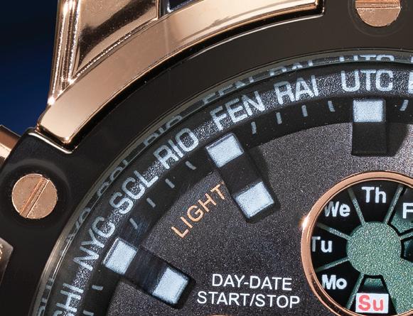 • Complications: stopwatch, alarm, a.m./p.m. settings, and day, date and month