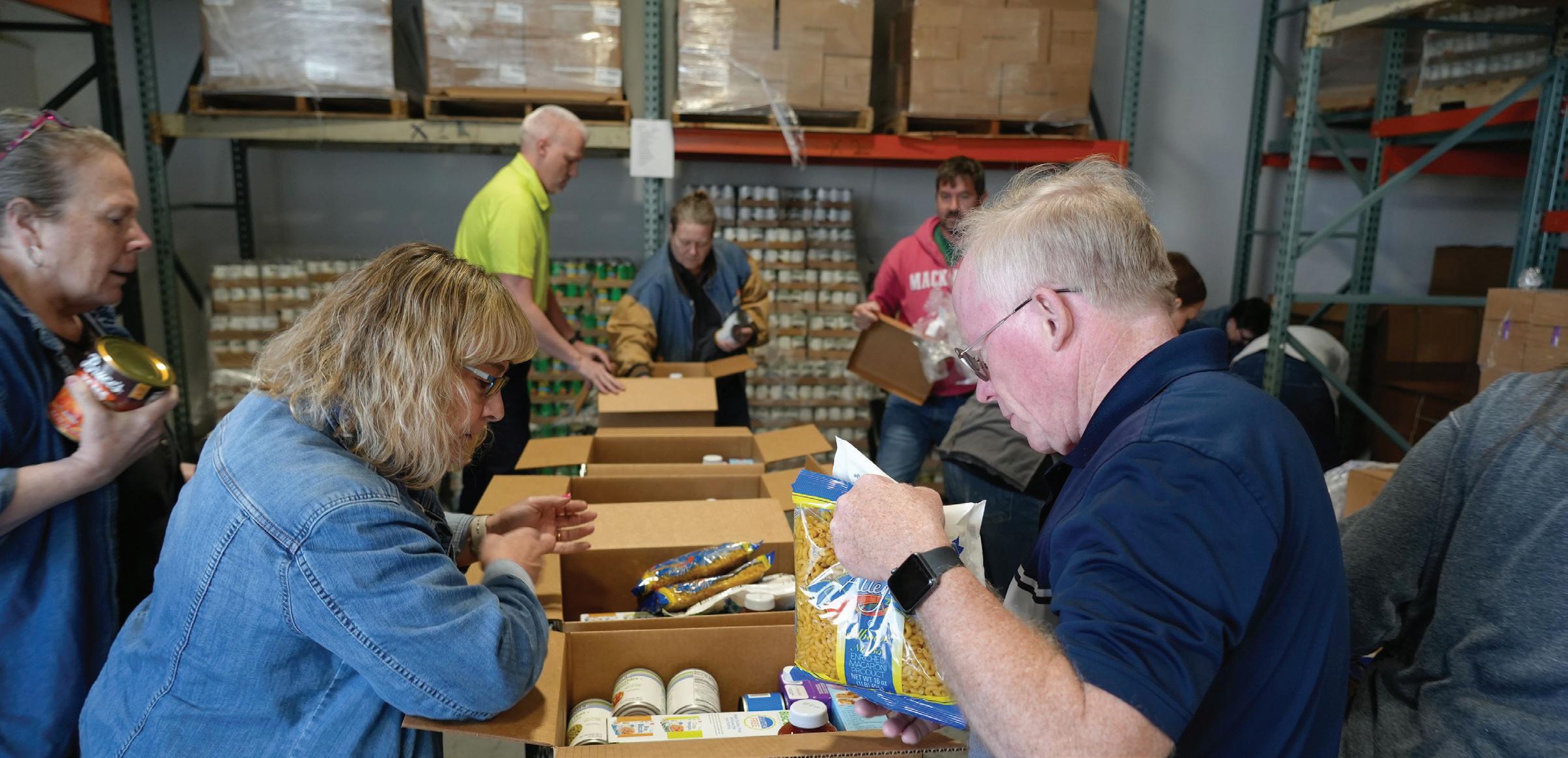 Hoosier Energy representatives put together over 200 boxes that included cereal, canned chicken, pasta and more, averaging close to two boxes a minute before supplies ran out. Volunteers spent their remaining time assembling mailers for the U.S. Postal Service’s Stamp Out Hunger Program, which benefits Hoosier Hills Food Bank locally.
