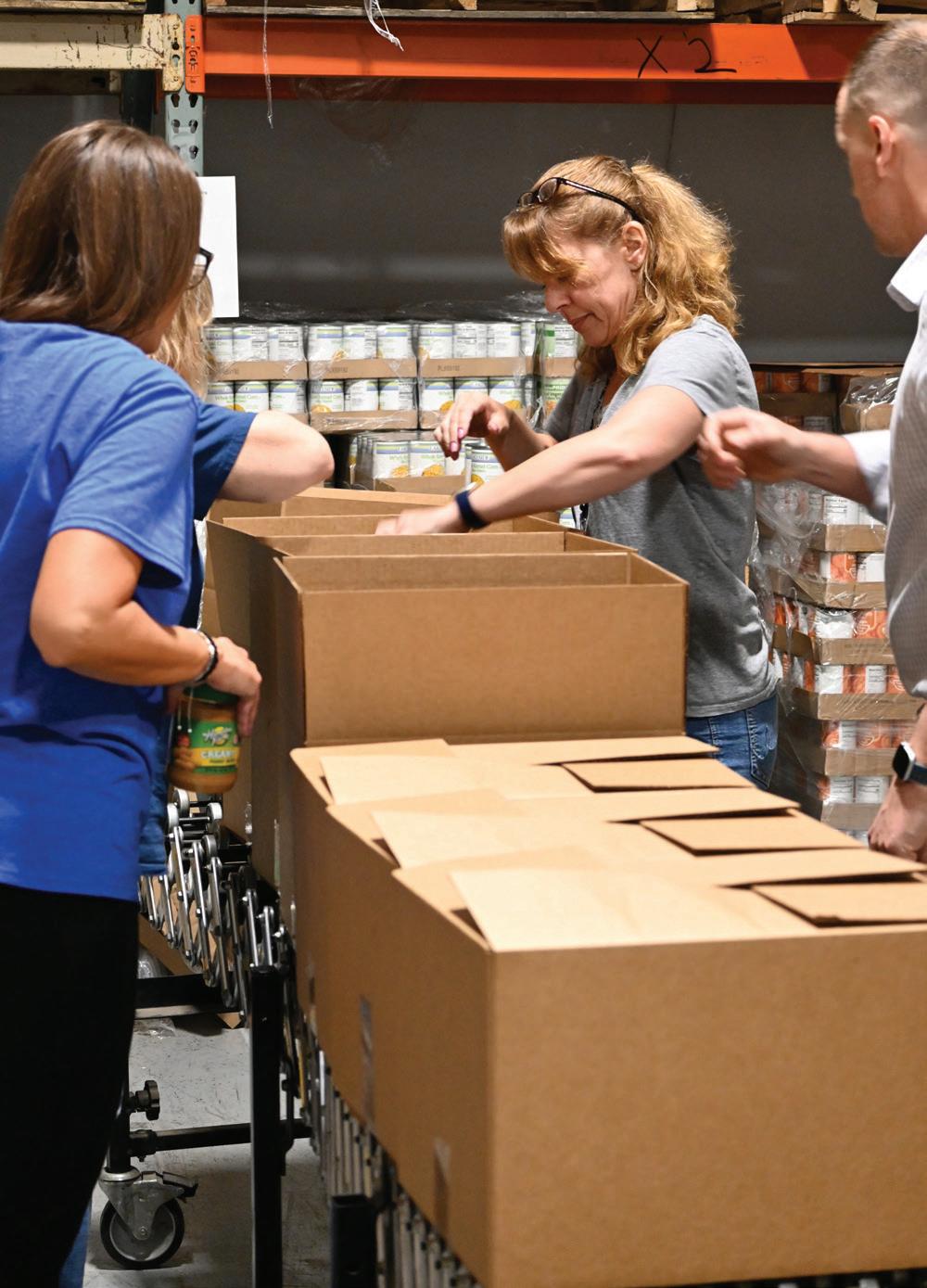 That was followed by the first-ever Community Impact Week event in Owen County at the Garrard Chapel Food Pantry, where a handful of employees helped pack approximately four pallets (160 boxes) of food on Tuesday, and others helped load those and other items on Wednesday. Volunteers also helped sort food in bins, break down cardboard boxes for recycling, and fill bags with applesauce and baby food.