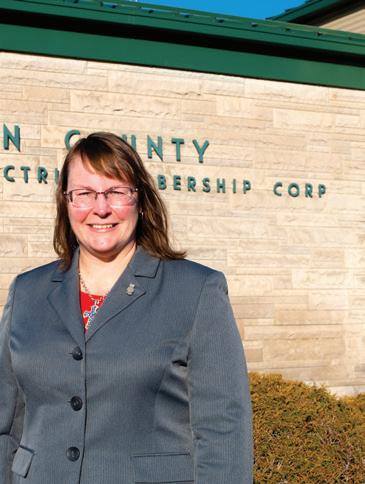 Neasa Kalme stands in front of the Steuben County REMC building, where she represents District 6 on the board of directors. Kalme was voted onto the board in 2022 and is the first woman representative.