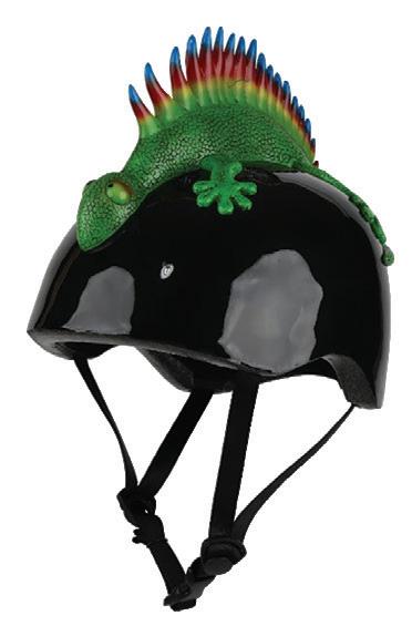 The Tony Hawk multi-purpose helmets were sold in various colors and have black straps and a black buckle. Credhedz Lizard multi-purpose helmets are black with a green plastic lizard on the top of the helmet and have black straps and a black buckle. Crayola Dry Erase multi-purpose helmets are white and have black straps and a black buckle and are sold with a five-pack of markers.