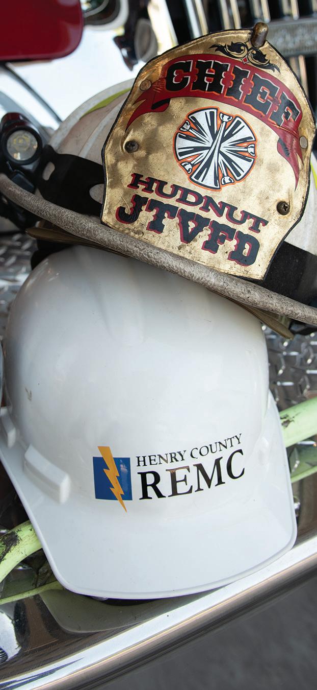 Heath Hudnut wears two white hats. One is as chief of the Jefferson Township Volunteer Fire Department in Sulphur Springs. The other is as the planning and construction coordinator, his “day job,” for Henry County REMC. Though different, the hats are cast from the same mold of community service.