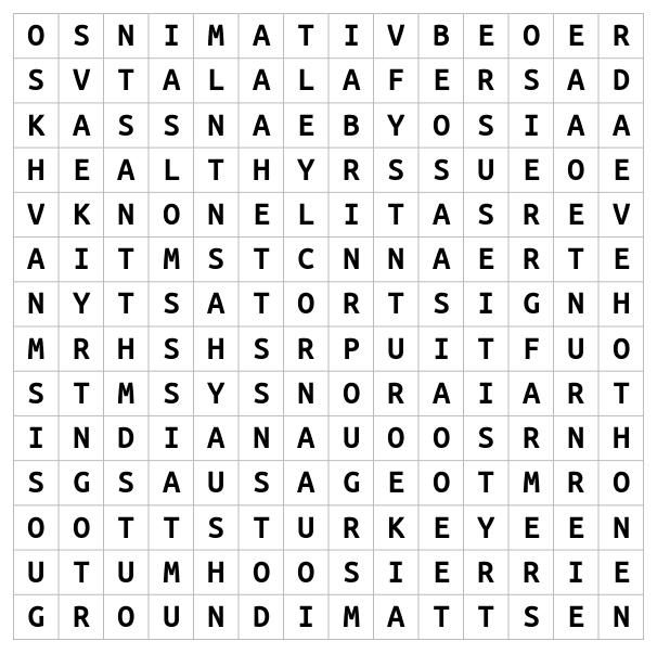 Every day Your Indiana Turkey Farmers work hard to bring you the best turkey products on the market. Visit IndianaTurkey.com to learn more about turkey production in Indiana and get turkey recipe inspiration for your late Summer grilling and Fall season tailgate parties. Can you find the bolded words in the puzzle?
