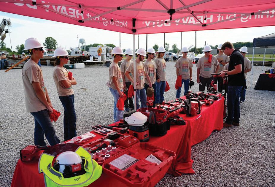 On the final day of camp at Henry County REMC, summer cooperative camp participants gather around the Milwaukee Tools demo