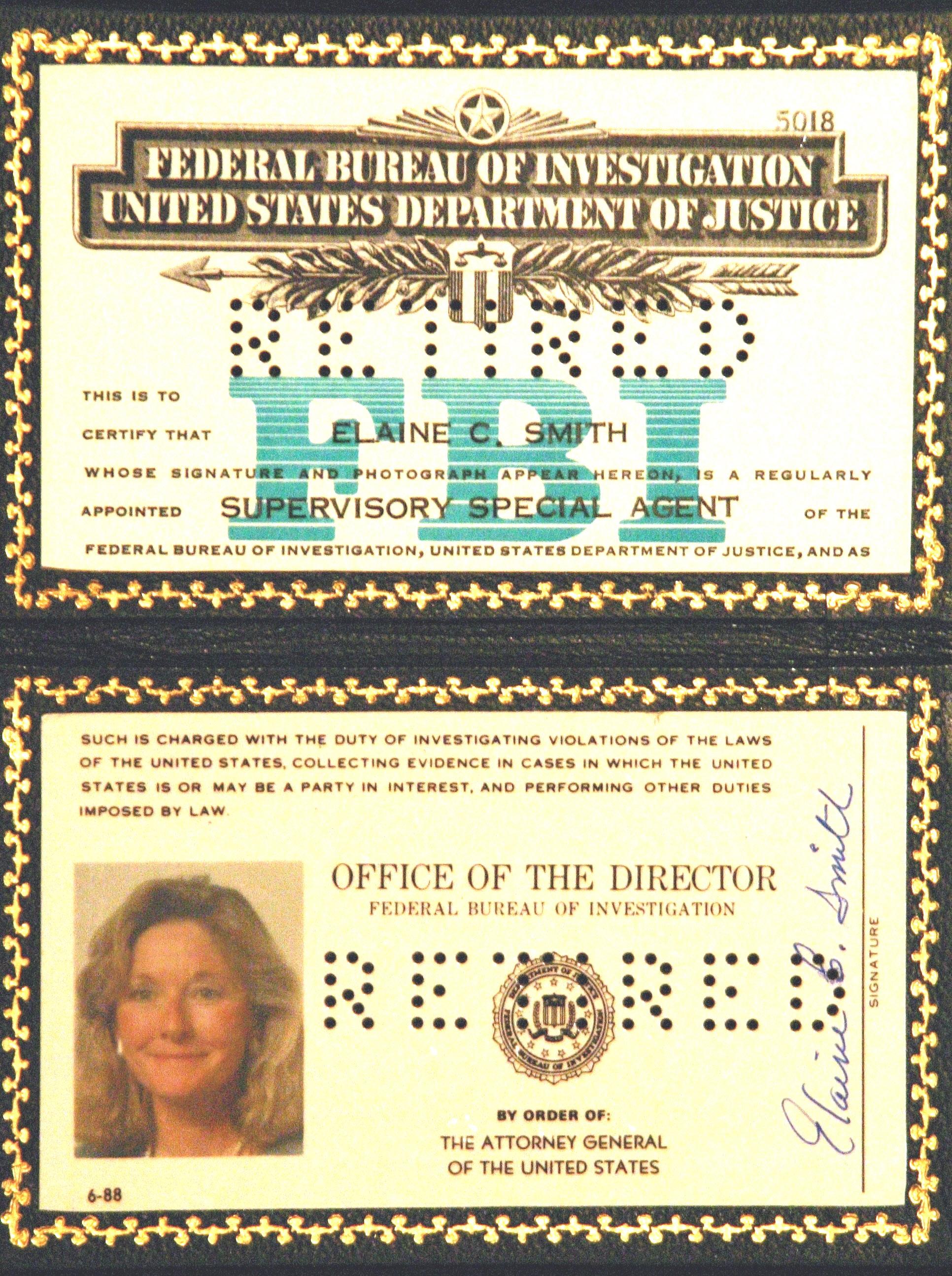 Smith receives her FBI credentials from her husband, Tom, who was an agent himself.