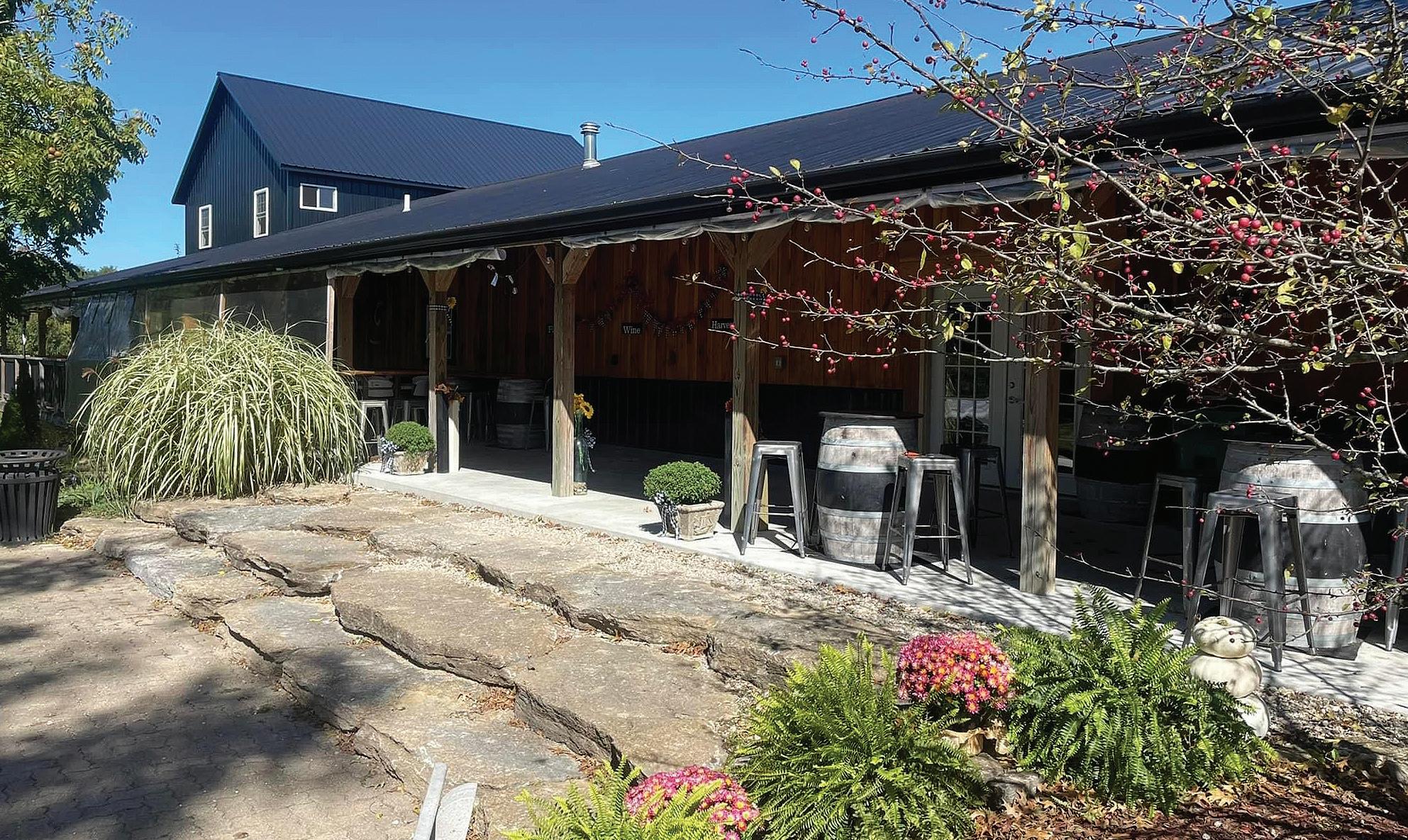 Most businesses are born when passion and an unmet need intersect. For Doug Holtkamp, that meant taking his winemaking hobby from a treat shared with friends and family into what’s now an award-winning, beloved destination in southeastern Indiana. Today, Holtkamp Winery is a family-owned, true Estate Winery, producing and bottling wines using grapes from their six acres of estate vineyards planted in 2013. Their 17 varieties of Hoosier-grown grapes, including Catawba, Osceola Muscat, Traminette, and Vidal Blanc, join sourced grapes from California and Oregon and juice from Midwestgrown fruit to create over 30 wines. Doug and fellow vintner Mike McCann create wines ranging from classic dry and semi-dry red and whites to sweet fruit, bourbon barrelaged, and specialty dessert wines. However, the quality of their wines isn’t the only draw: Holtkamp’s tasting room and winery grounds offer a sweet reprieve from the
