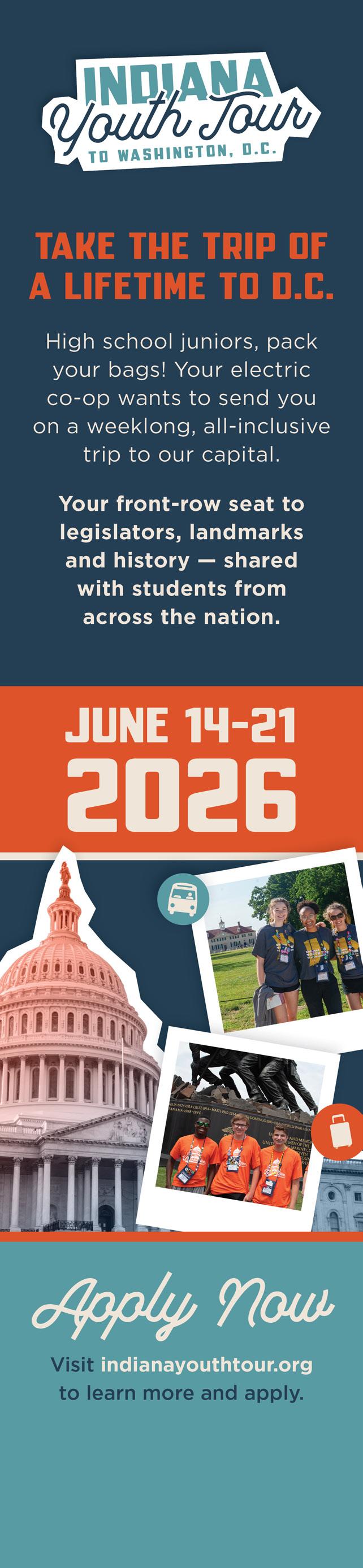Indiana Connection is for and about members of Indiana’s locally-owned, not-for-profit electric cooperatives. It helps consumers use electricity safely and efficiently; understand energy issues; connect with their co-op; and celebrate life in Indiana. Over 320,000 residents and businesses receive the magazine as part of their electric co-op membership. The average printed and mailed cost per issue is 54 cents.
