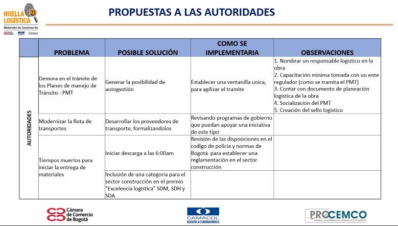 Propuestas a las Autoridades