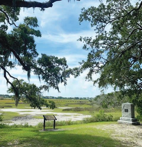 the Navy. Overlooking the Frederica River, and now one of the most serene spots on St. Simons Island’s western side, it was originally a Native American settlement here and was later used as a port for ships entering the harbor. Through the years its transformation has included a Franciscan monastery, a naval base, a cotton plantation, and a hub for transporting lumber and timber. Three small islands that formed from ballast discarded by ships dating back to the 18th century can be seen in the water across the distance from the fishing pier. It’s an ideal spot to take in a coastal sunset. Nearby the public park are the former Hamilton Plantation tabby slave cabins that were preserved and are maintained by the Cassina Garden Club.