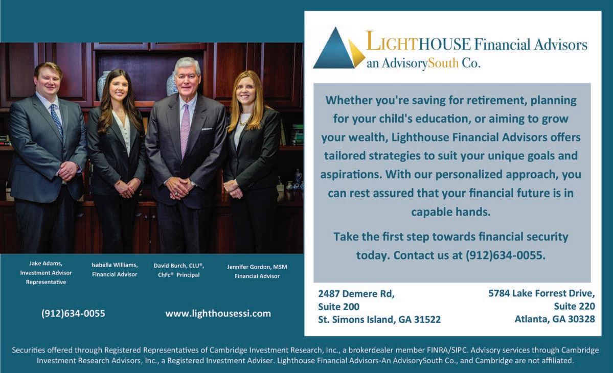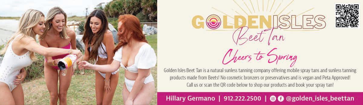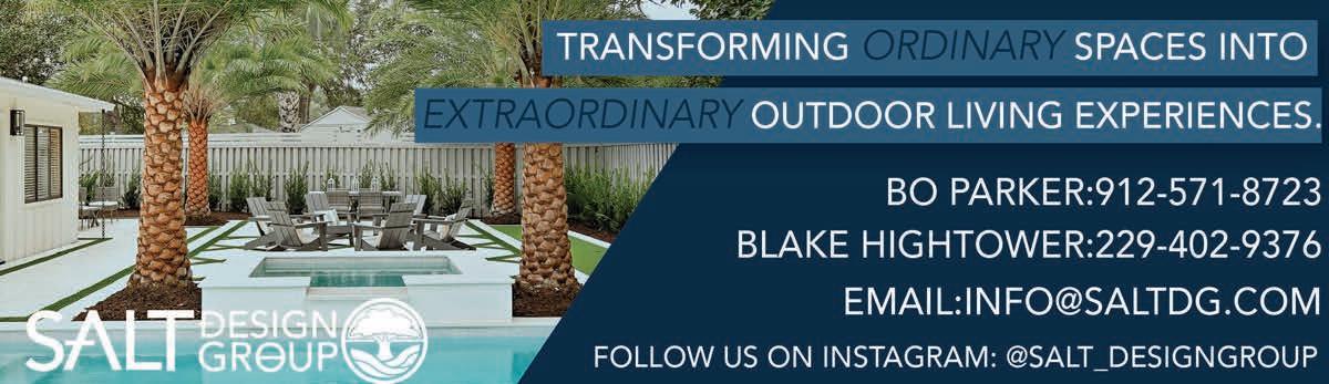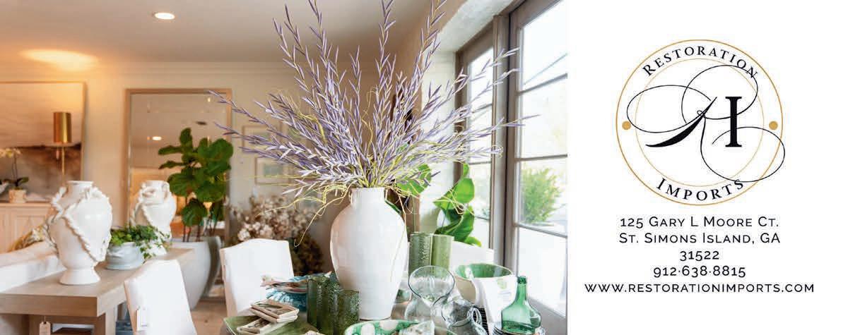 ElegantIslandLiving is published monthly. Reproduction of any photographs, artwork, or copy prepared by Elegant Island Living is strictly prohibited without prior written permission of the publisher. The advertisers and publisher are not responsible or liable for misinformation, misprints, or typographical errors. All electronic files submitted to Elegant Island Living become property of the magazine. ©2024 Elegant Island Living P.O. Box 21763 St. Simons Island, GA 31522. All Rights Reserved.