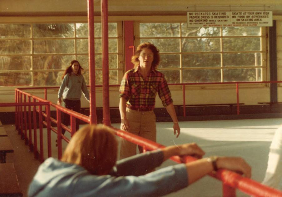 In the mid-twentieth century, several summer amusements were concentrated in one convenient location on the southern end of St. Simons Island. Built in 1950, Glynn County’s International Style Casino provided a variety of entertainment, including a bowling alley and a swimming pool, steps from the St. Simons Lighthouse. The new building was adjacent to another structure, which was also called the Casino when it was built in the late 1930s. This structure remains today and houses a library and theater. One of the new Casino’s main attractions was a roller-skating rink, which drew eager attendees from both the island and the mainland. Located on the upper floor of the casino, the rink kept its rules prominently posted. Skaters were to wear “proper dress” and avoid reckless skating or the use of profanity.
