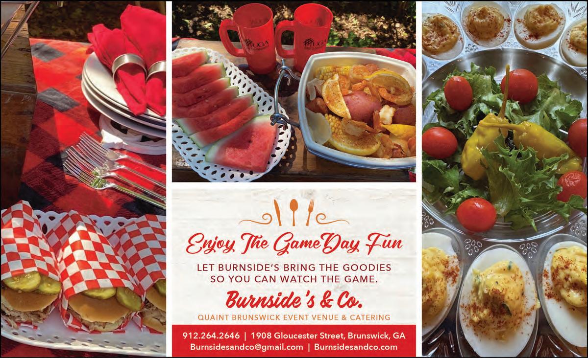 When it comes to Bulldawg football, everything you need to follow UGA can be found at georgiadogs.com/sports/football. The game that most directly affects the Golden Isles doesn’t come until November 2, when the Dawgs take on the Gators and St. Simons Island becomes Athens-by-the-Sea as we welcome UGA students and others making the annual trek to Jacksonville to watch the big game. However, all eyes will be on Coach Kirby Smart and those boys in red and black on September 28 for the showdown against the Alabama Crimson Tide in Tuscaloosa. The Dawgs are going to be looking for retribution after last year’s heartbreaking 27-24 loss to Bama in the SEC Championship game! The game airs at 7:30 p.m., so plan your local tailgate/ watch parties now! If you need a tasty spread but don’t want the bother of cooking, check out the offerings from our friends over at Burnside’s & Co. at burnsidesandco.com. They can put together a Day spread to fit your your appetite, ranging charcuterie trays, slider sandwich platters, wings, other appetizers to mouthwatering BBQ, Low Country Boil, and more. Give them a call so you can relax enjoy the game!