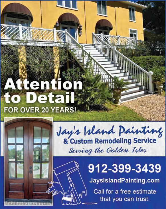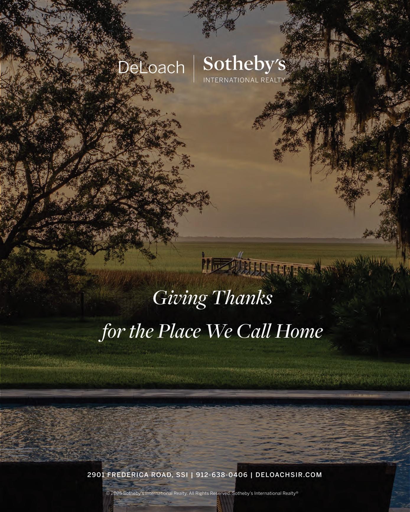 Elegant IslandLiving is published monthly. Reproduction of any photographs, artwork, or copy prepared by Elegant Island Living is strictly prohibited without prior written permission of the publisher. The advertisers and publisher are not responsible or liable for misinformation, misprints, or typographical errors. All electronic files submitted to Elegant Island Living become property of the magazine. ©2025 Elegant Island Living P.O. Box 21763 St. Simons Island, GA 31522. All Rights Reserved.