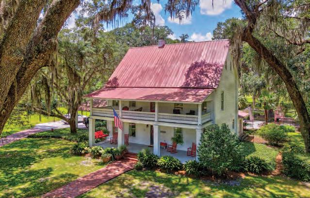 Step into timeless Southern charm at this beautifully restored 1895 farmhouse, nestled on 3,48 private acres under a canopy of ancient oaks. The main residence offers apx. 3,600SF of warm, inviting living space with heart pine floors, soaring ceilings, and wraparound porches designed for slow mornings and quiet evenings. A charming guest cottage above the barn provides the perfect space for visitors, a studio, or an income-generating short-term rental. A peaceful pond adds to the property's serenity and natural beauty. Surrounded by over 400 acres of protected trust land, the setting is unmatched - with grazing cows and quarter horses just beyond your fence line, offering views that feel like a living painting. Over $100,000 in recent Airbnb and event income. This property is ideal as a private estate, wedding venue, or retreat property.