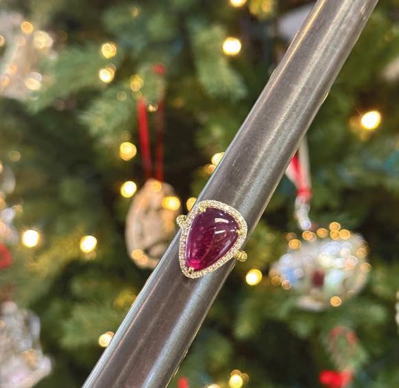 PUT A BOW ON IT This matched necklace and ring set by Allison Kaufman is the perfect way to check someone off your list. Blue topaz in two shades set in white gold and accented with diamonds. Everyone wants a Cunninghams bow under their tree! 1510 Newcastle St., Brunswick, 912.265.8652, cunninghamjewelers.com.