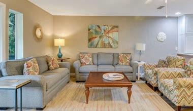 Renovated, fully furnished, two-bedroom condo (sleeps 7) overlooking the golf course and lagoon views in Sea Palms.