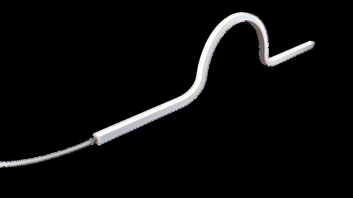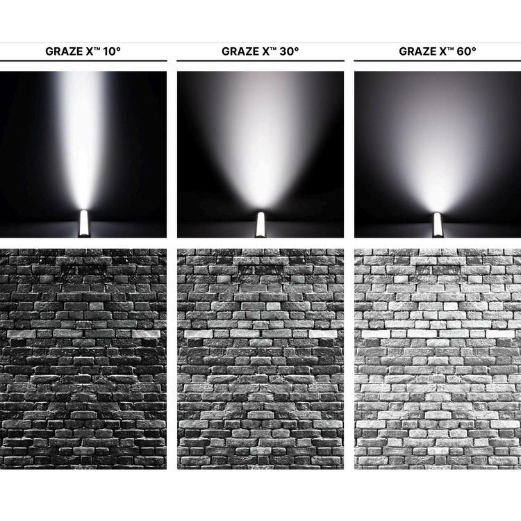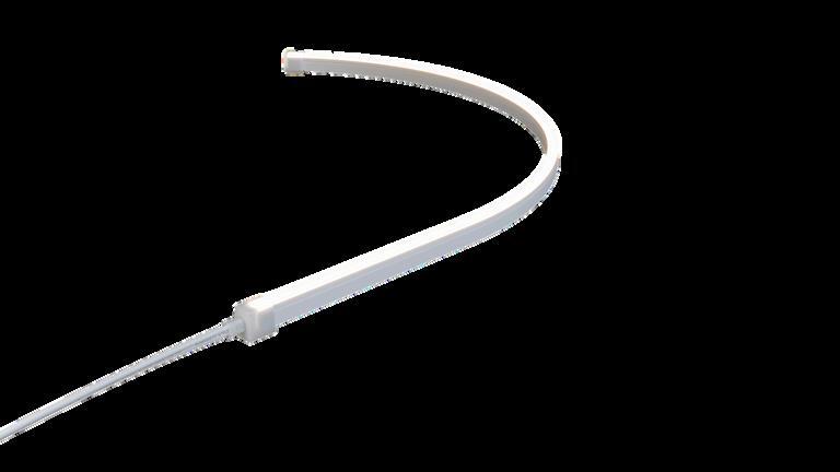 Flexible optic fixture engineered for directional grazing or washing of curved surfaces, niches, and architectural details.