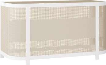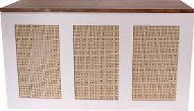 WHITE FRAMED BAR BACK WITH CANE & OAK