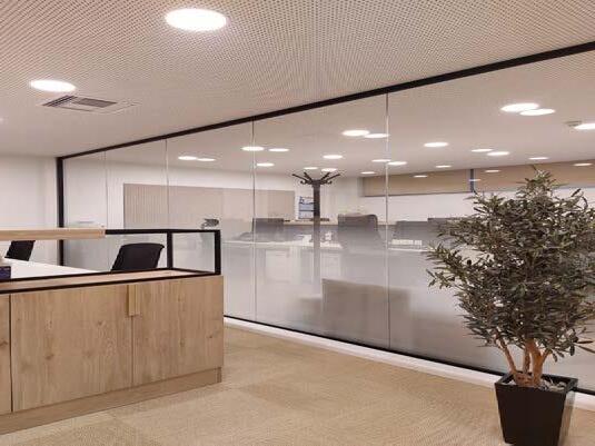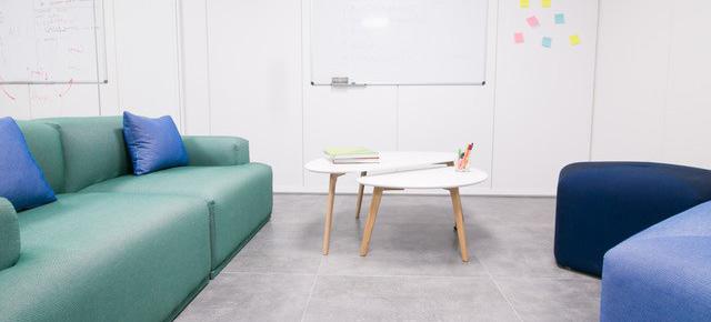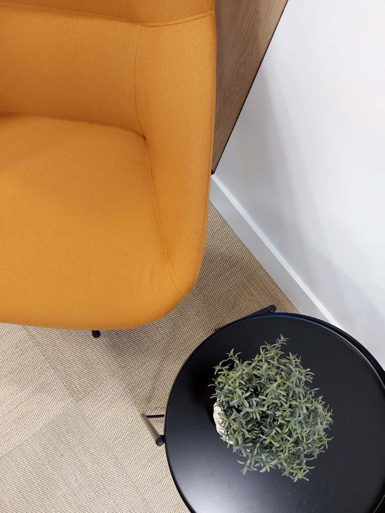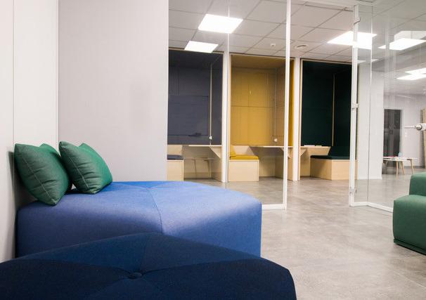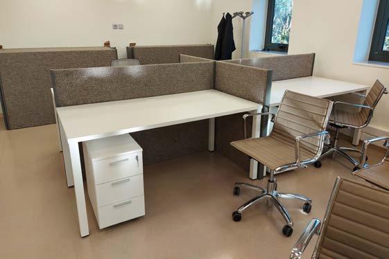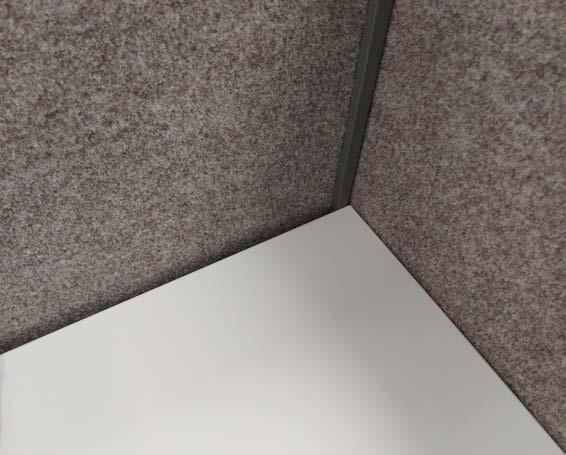 Materials: Laquered desk dividers with felt for accoustic solutions. Furniture from ASSET.