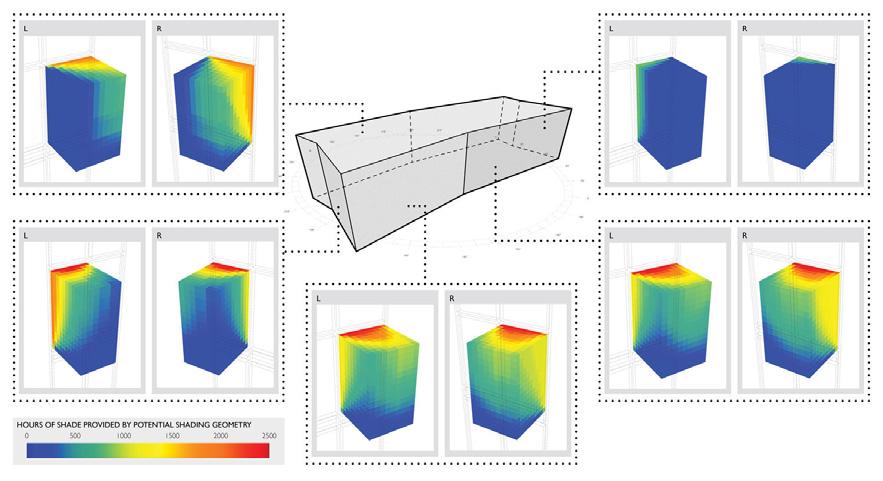 Fig 1: What is the most effective shading geometry for various facade orientations? (2018 Competition, Graphics – Honorable Mention, Elliot J Glassman)