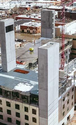 Crews are in various stages of completion throughout the 10-story building, includ-