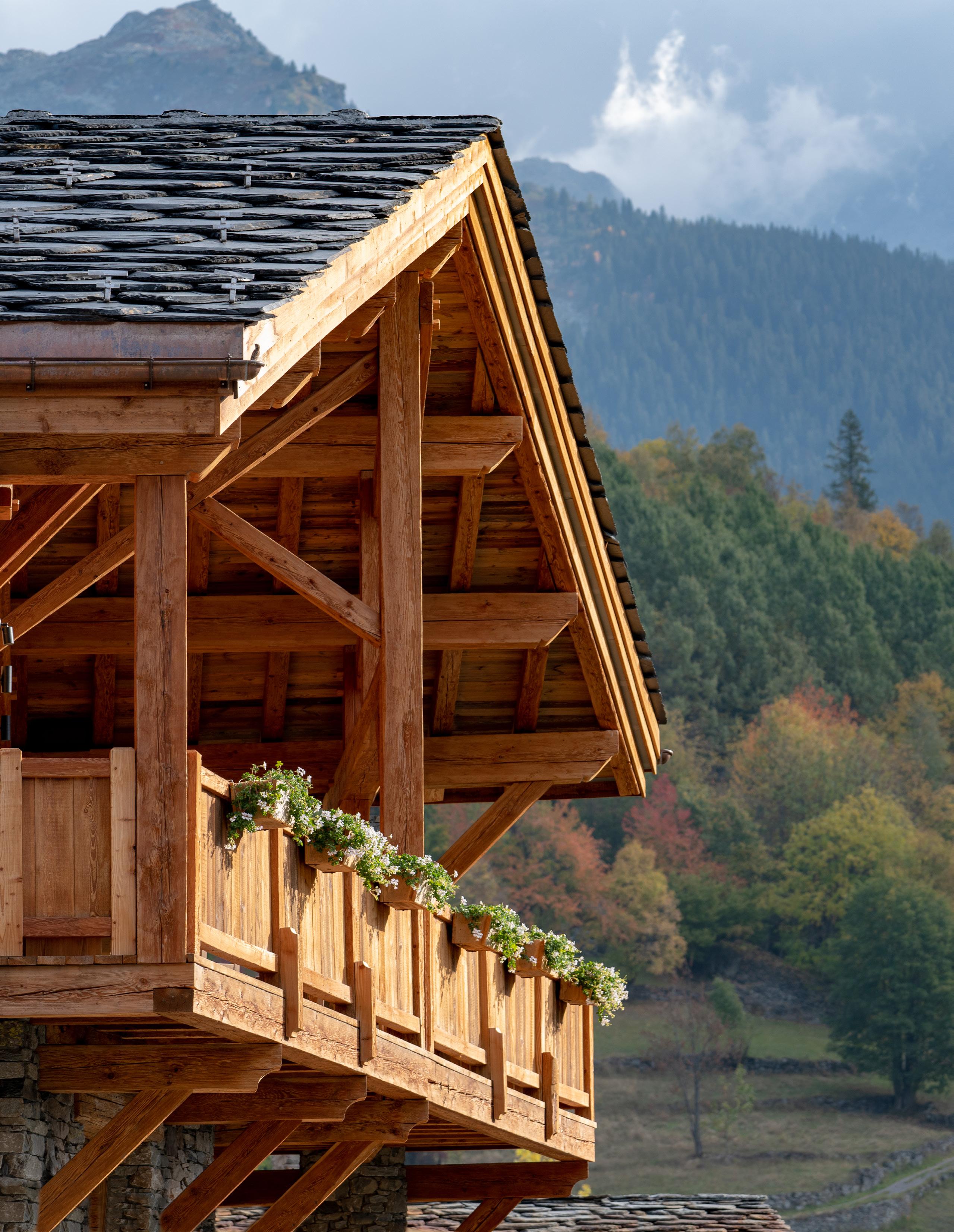Le Miroir, a charming village located in the Tarentaise Valley, is distinguished by its pillar houses. With the earliest existence documented as far back as 1633, these historic dwellings were crafted by the Piedmontese masons with the help of the local landowners using locally sourced wood and stone. Builders carefully designed these structures using large pillars and wide roof overhangs to create well vented, covered areas where farmers could store hay and wood, as well as find protection from the elements themselves.