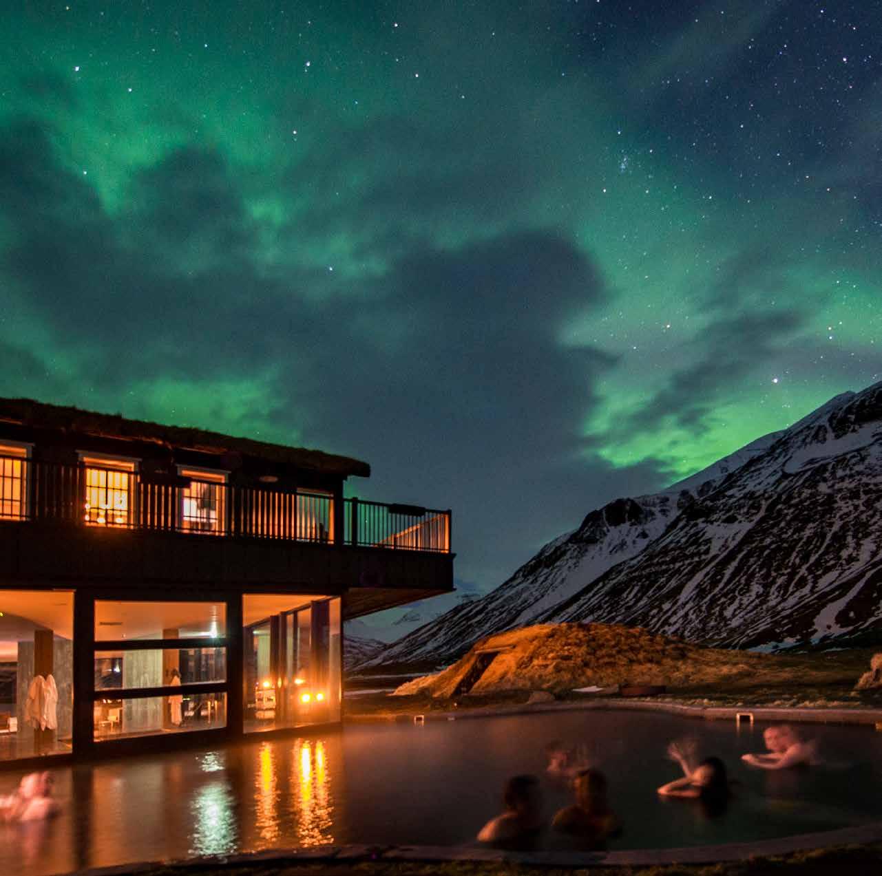 ◆ Relax in the outdoor geothermally-heated pool while the northern lights shine overhead