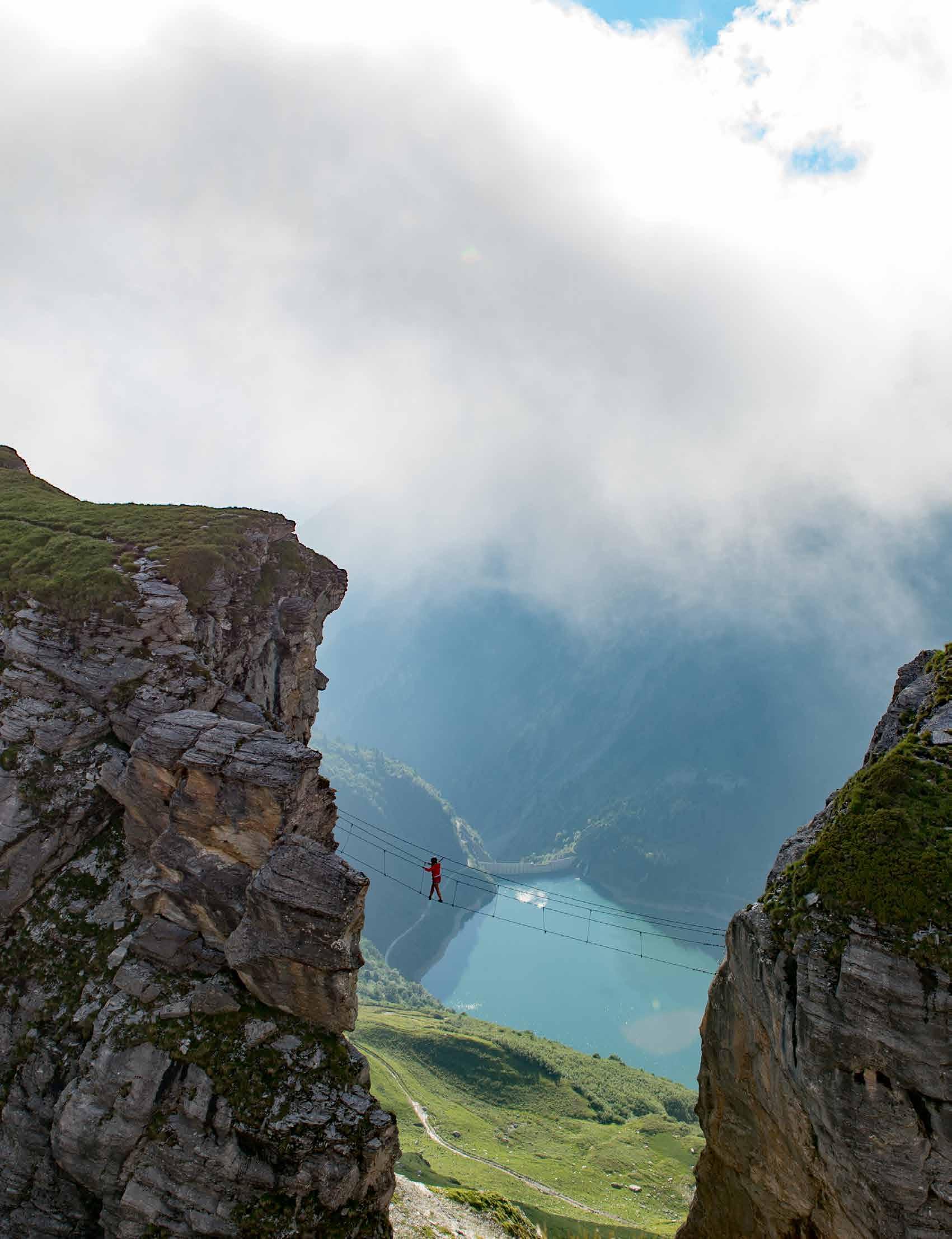 DO IT ALL, FROM GLACIER TREKKING UNDER THE ALPS’ TALLEST SUMMIT, E-BIKING THROUGH FORESTS PAST AGEOLD CHURCHES, AND HIKING TO ITALY ON AN OVERNIGHT HUT TRIP.