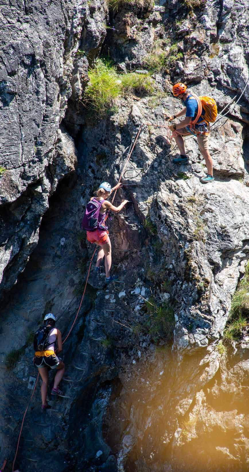 › Hiking, glacier hiking, via ferrata, rock climbing, canyoning, rafting, e-mountain biking, and trail running