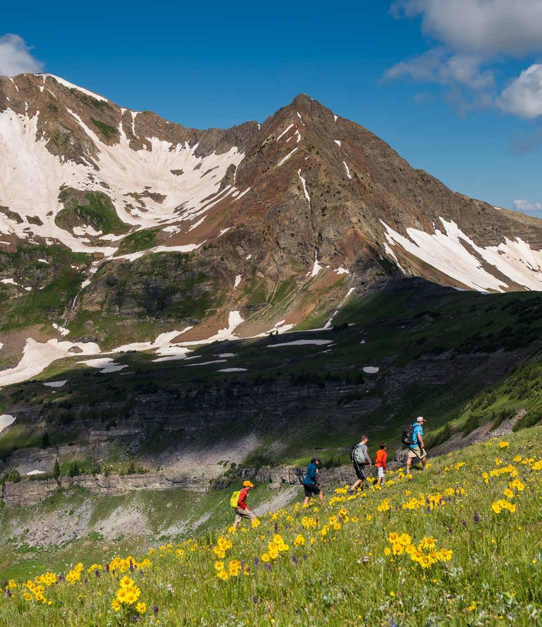 A local favorite, the Guides Ridge ascent is a ropesupported climb that follows an 800-foot ridge to Mount Crested Butte’s 12,162-foot summit. A stellar introduction to technical alpine ascents, this popular climb is suitable for adventurous families and seasoned climbers alike.