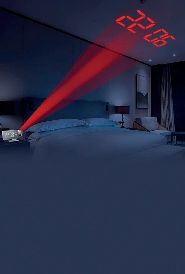 El reloj despertador de TUSOUL puede proyectar la hora en la pared con una luz roja suave desde una distancia de hasta 5 metros, o podrás verla fácilmente en el techo mientras estás cómodamente acostado en la cama.