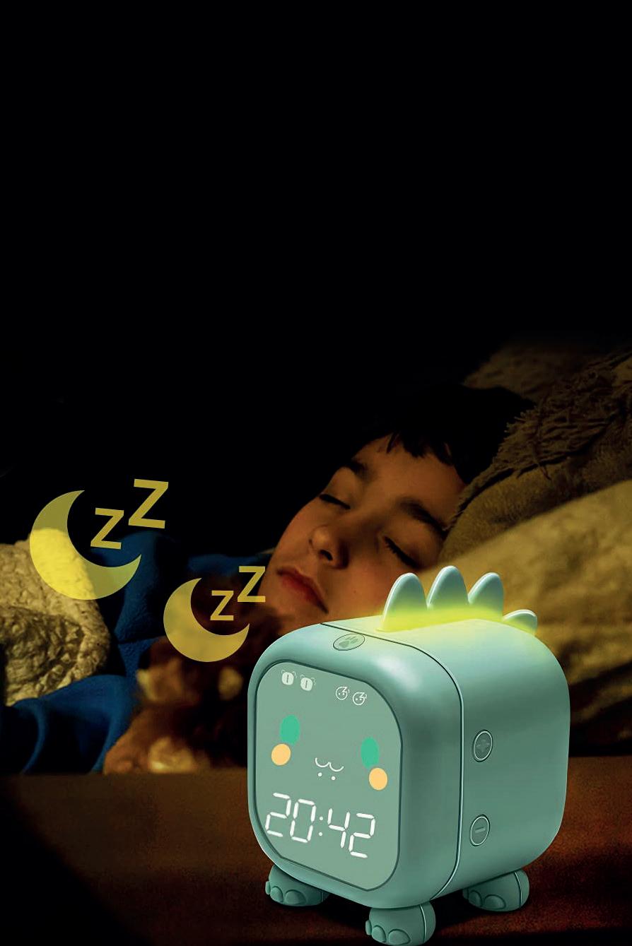 Este divertido reloj despertador con forma de dinosaurio, de AnRuk, es un buen entrenador para ayudar a los niños a dormir solos por la noche, pues, además de tener alamas programables, cuenta con función de lámpara.