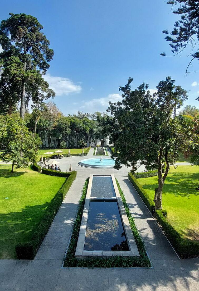 En el jardín del casco principal de la Hacienda, que es en la entrada principal, se encuentra la “Fuente de las Tres Teresas” hecha en cerámica de talavera.