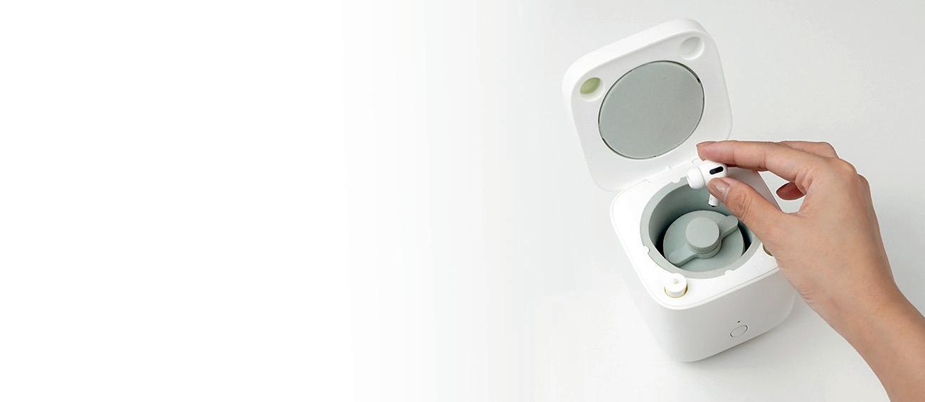 Cardlax ofrece una increíble minilavadora para los auriculares inalámbricos. Es un cubo que integra unos rodillos pequeños para girar los audífonos a velocidad alta y junto al spray que se echa deja los AirPods como nuevos.