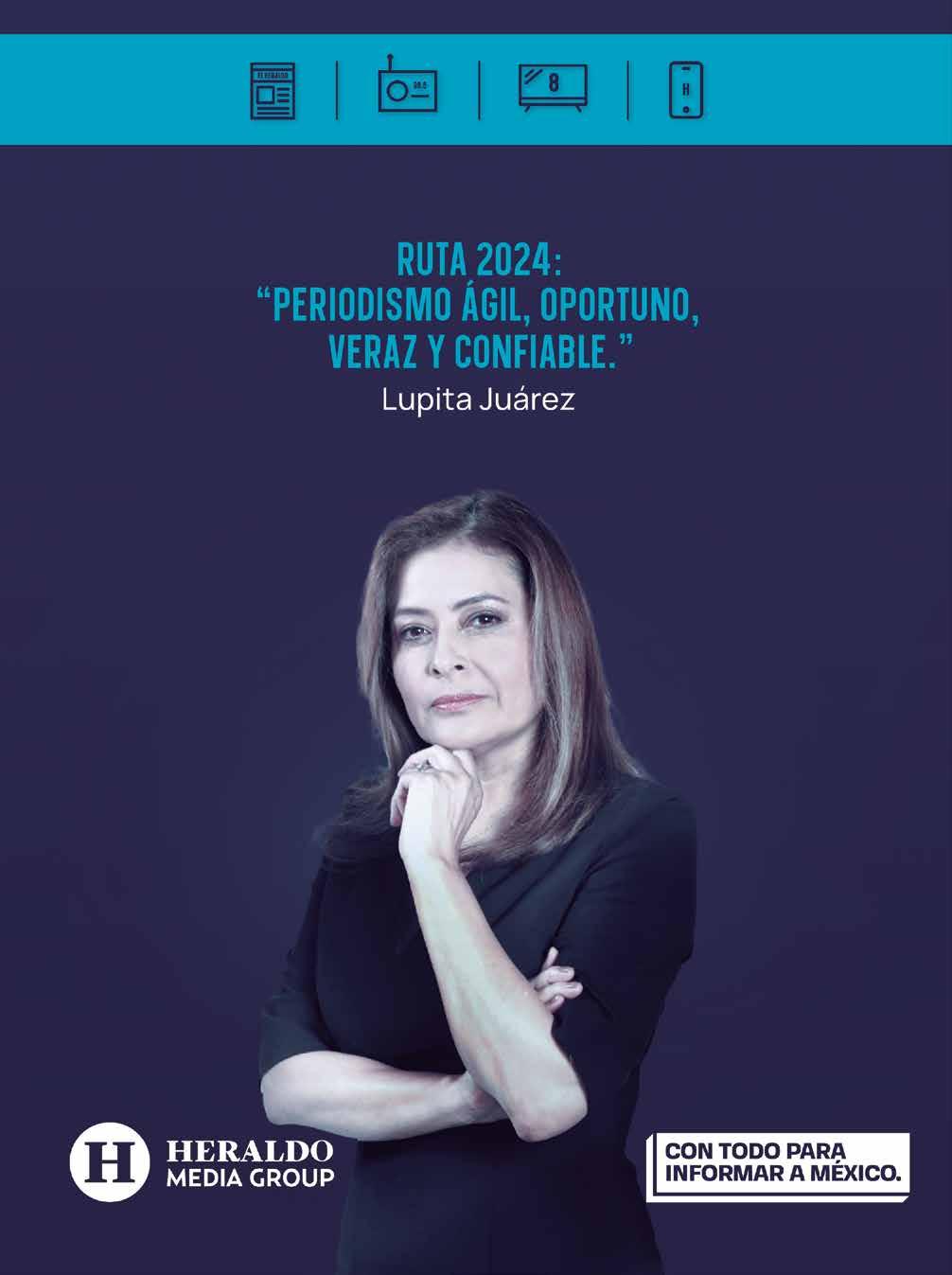 LUNES 11 / 03 / 2024 WWW.HERALDODEMEXICO.COM.MX Sacapuntas Diario El Heraldo de México. Editor responsable: Alfredo González Castro. Número de Certificado de Reserva otorgado por el Instituto Nacional del Derecho de Autor 04-2009-060419022100-101. Número de Certificado de Licitud de título y Contenido No.16921. Domicilio de la Publicación: Paseo de la Reforma No. 250, Piso 24, Colonia Juárez, Del. Cuauhtémoc, C.P. 06600, Ciudad de México. Imprenta: Impreso en Talleres de La Crónica Diaria , S.A. de C. V. Calzada Azcapotzalco La Villa No. 160 , Barrio San Marcos Alcaldia Azcapotzalco, CP 02020. Publicación Diaria. Todos los derechos están reservados. Queda estrictamente prohibida la reproducción total o parcial de los contenidos e imágenes de esta publicación sin previa autorización de El Heraldo de México. El contenido de los artículos es responsabilidad exclusiva de los autores. ANGEL MIERES ZIMMERMANN PRESIDENTE DEL CONSEJO DE ADMINISTRACIÓN MARÍA CRISTINA MIERES ZIMMERMANN VICEPRESIDENTA DE DESARROLLO CULTURAL Y SOCIAL ANTONIO HOLGUIN ACOSTA VICEPRESIDENTE DE RELACIONES INSTITUCIONALES FRANCO CARREÑO OSORIO DIRECTOR GENERAL ADRIÁN PALMA ARVIZU DIRECTOR CREATIVO adrian@elheraldodemexico.com ARMANDO KASSIAN DIRECTOR DIGITAL armando.kassian@elheraldodemexico.com JUAN CARLOS CELAYETA DIR. COMERCIAL Y RELACIONES INSTITUCIONALES juan@elheraldodemexico.com JORGE ALMARAZ LÓPEZ EDITOR GENERAL jorge@elheraldodemexico.com IVÁN RAMÍREZ VILLATORO EDITOR EN JEFE ivan@elheraldodemexico.com RAYMUNDO SÁNCHEZ PATLÁN SUBDIRECTOR EDITORIAL raymundo@elheraldodemexico.com ANDREA MERLOS LÓPEZ DIRECTORA HERALDO TELEVISIÓN andrea@elheraldodemexico.com RAFAELA KASSIAN MIERES DIRECTORA SOFT NEWS / GASTROLAB ALFREDO GONZÁLEZ CASTRO DIRECTOR EDITORIAL ADRIÁN LARIS CASAS DIRECTOR HERALDO RADIO adrian.laris@elheraldodemexico.com FRANCISCO NIETO BALBINO EDITOR PAÍS / CDMX / SAMUEL RUBÉN OCAMPO BRITO EDITOR EDOMEX / EDOS /JOSÉ CARREÑO FIGUERAS EDITOR ORBE / ALIDA PIÑÓN EDITORA ARTES Y CÚPULA / NAYELY RAMÍREZ MAYA EDITORA ESCENA / MIRIAM LIRA PACHECO EDITORA GASTROLAB Y ESCAPADA H / AILEDD MENDUET HUERTA EDITORA PANORAMA / DANIELA MICHELINE ZAMBRANO CADENA EDITORA MENTE MUJER / HÉCTOR JUÁREZ CEDILLO EDITOR META
